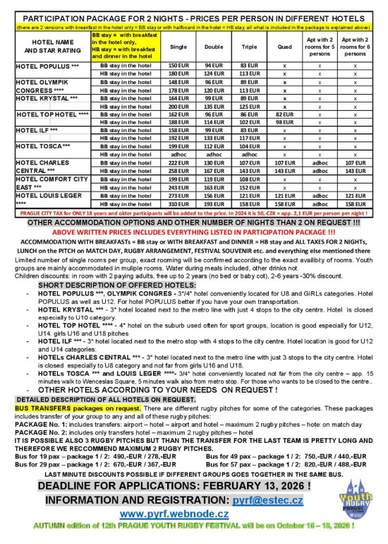 PRAGUE YOUTH RUGBY FESTIVAL - poster for 2026: